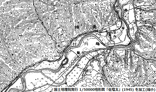 続いては芭呂沢駅の位置確認のため入手した1/50000地形図「佐瑠太」(1945) の一部で、こちらも掲載に当たって控えめな大きさになるよう縮小をかけているが、中央やや左下に、駅の記号と「ばろさわ」の文字が見えるだろうか。