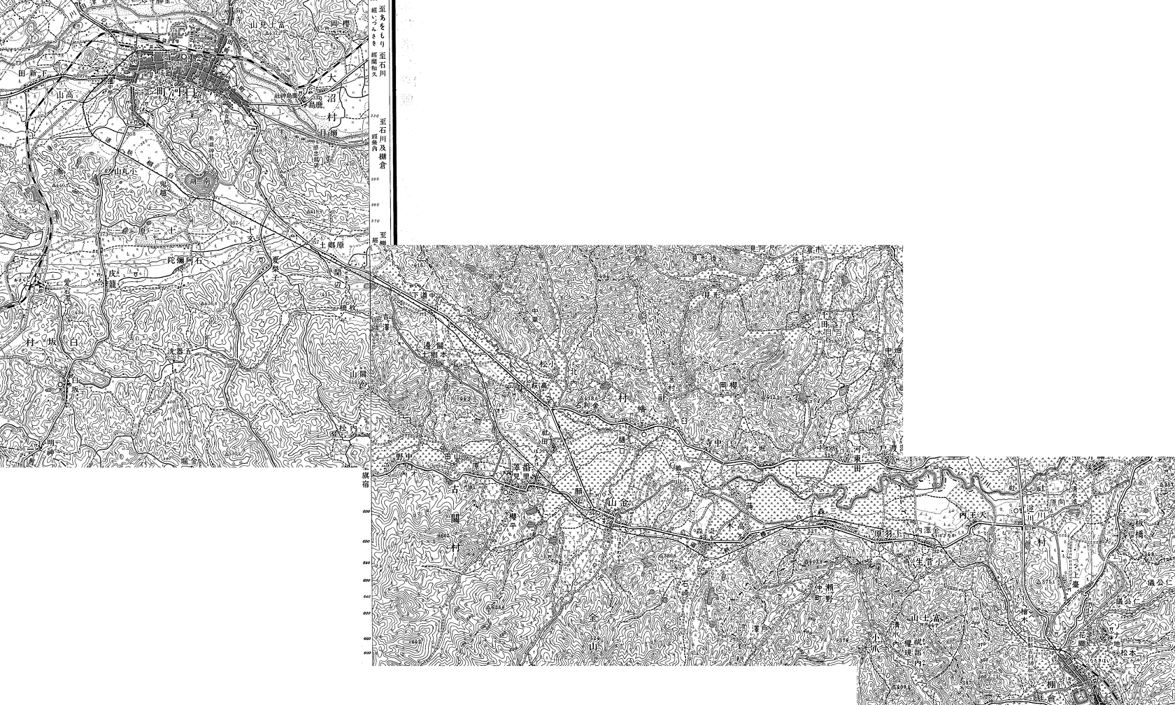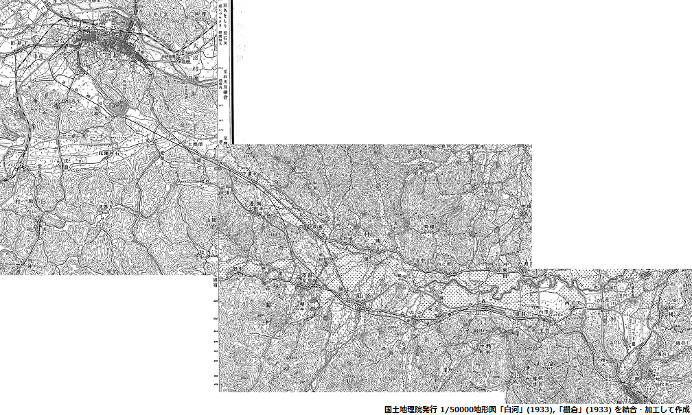 下部に示したのは、それらの地形図から、白棚線の周辺部分だけを繋げた画像だ。
