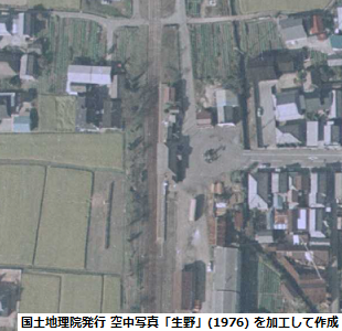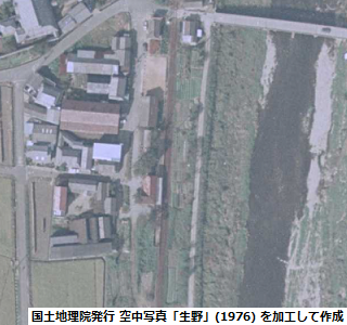 参照した空中写真(左図):「生野」(撮影年月日:1976/11/25、写真番号:CKK763-C9B-9)