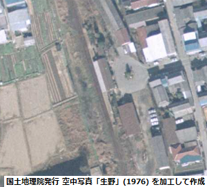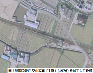 参照した空中写真(左図):「生野」(撮影年月日:1976/10/17、写真番号:CKK763-C10B-20)