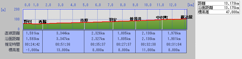 その一方で、標高(グラフの縦軸)は曖昧な値を多分に含んでいるため参考程度にしか見られない。