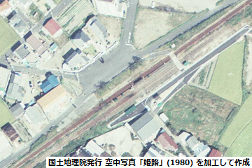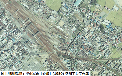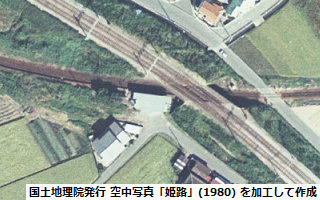 参照した空中写真(左図):「姫路」(撮影年月日:1980/10/03、写真番号:CKK803-C7A-11 ※野口駅と同じ写真)