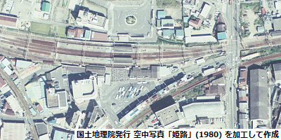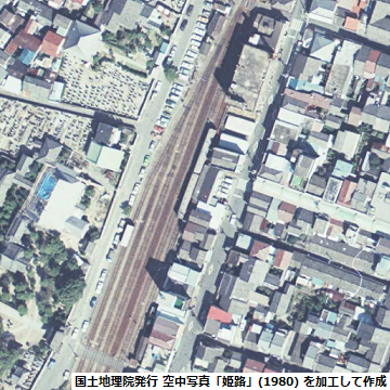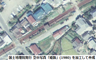 参照した空中写真(左図):「姫路」(撮影年月日:1980/10/03、写真番号:CKK803-C7A-7 ※高砂北口駅と同じ写真)