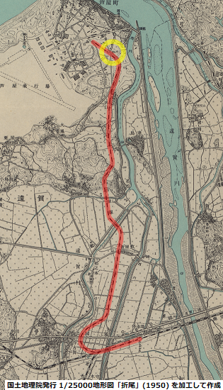 (※1) 国土地理院公開の空中写真「折尾」(MKU613-C14-6) がマップで見られるタイル形式のものと一致する。撮影日は1961/08/17で廃止後だ。