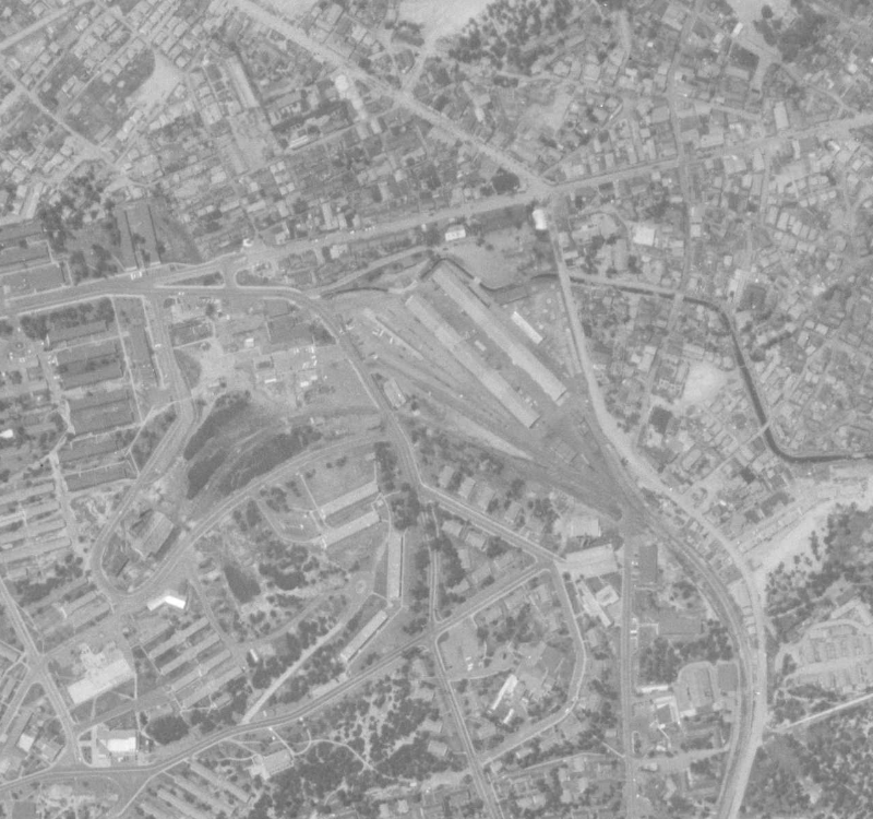 (ほぼ緑ヶ丘交差点付近。地形図や航空写真の線路はここを通ってはいないが....)