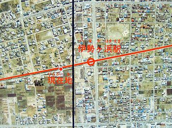 そこで、地形図における駅記号の位置を把握した上で、航空写真の該当箇所付近を改めて見てみたのだが、それでも駅の位置は相変わらず判然としなかった。