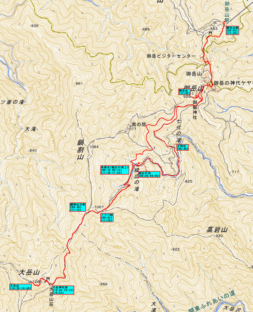 (929m)12:05-12:30 御岳山駅