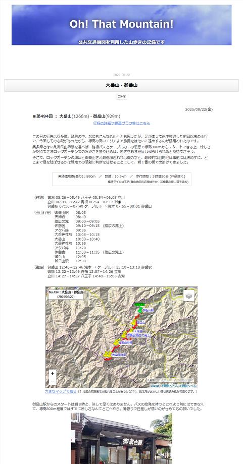 494. 2025/08/22(金) 【奥多摩】 《 大岳山(1266m)・御岳山(929m) 》