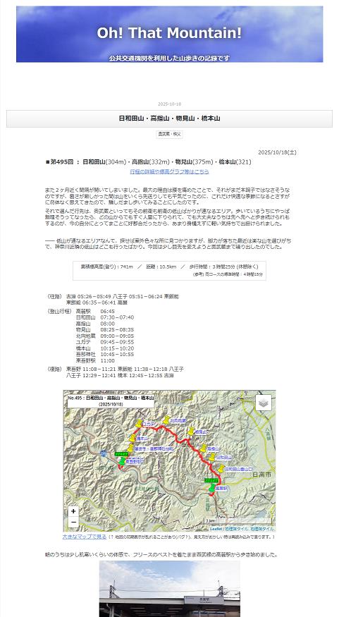 495. 2025/10/18(土) 【奥武蔵・秩父】 《 日和田山(304m)・高指山(330m)・物見山(375m)・橋本山(321m) 》