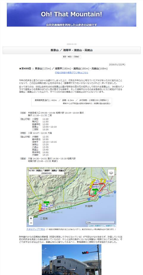 499. 2026/01/22(木) 【三浦・房総】 《 吾妻山(135m) / 湘南平(180m)・浅間山(180m)・高麗山(168m) 》