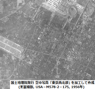 右の画像がその空中写真「東京西北部」(1956/04/13米軍撮影、写真番号:USA-M578-2-175)の一部だ。
