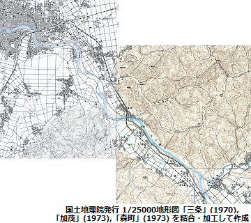 起点の東三条側から順に「三条」(1970),「加茂」(1973),「森町」(1973) の計3図を入手した。