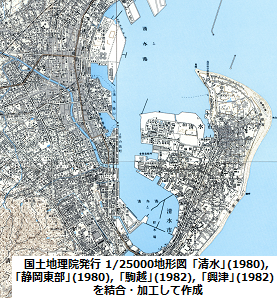 参照した空中写真(左図):「静岡」(撮影年月日:1976/02/03、写真番号:CCB7532-C6-25)