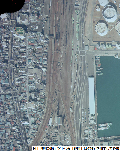 参照した空中写真(左図):「静岡」(撮影年月日:1976/02/03、写真番号:CCB7532-C4-24)