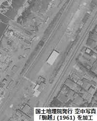 確かに1960年代のモノクロの空中写真を確認してみると、道路に面した位置に、後年の写真には見られない建物が確認でき、まさにそれが駅舎であるようにも見受けられる。