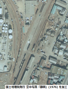 参照した空中写真(左図):「静岡」(撮影年月日:1976/02/03、写真番号:CCB7532-C5-24)